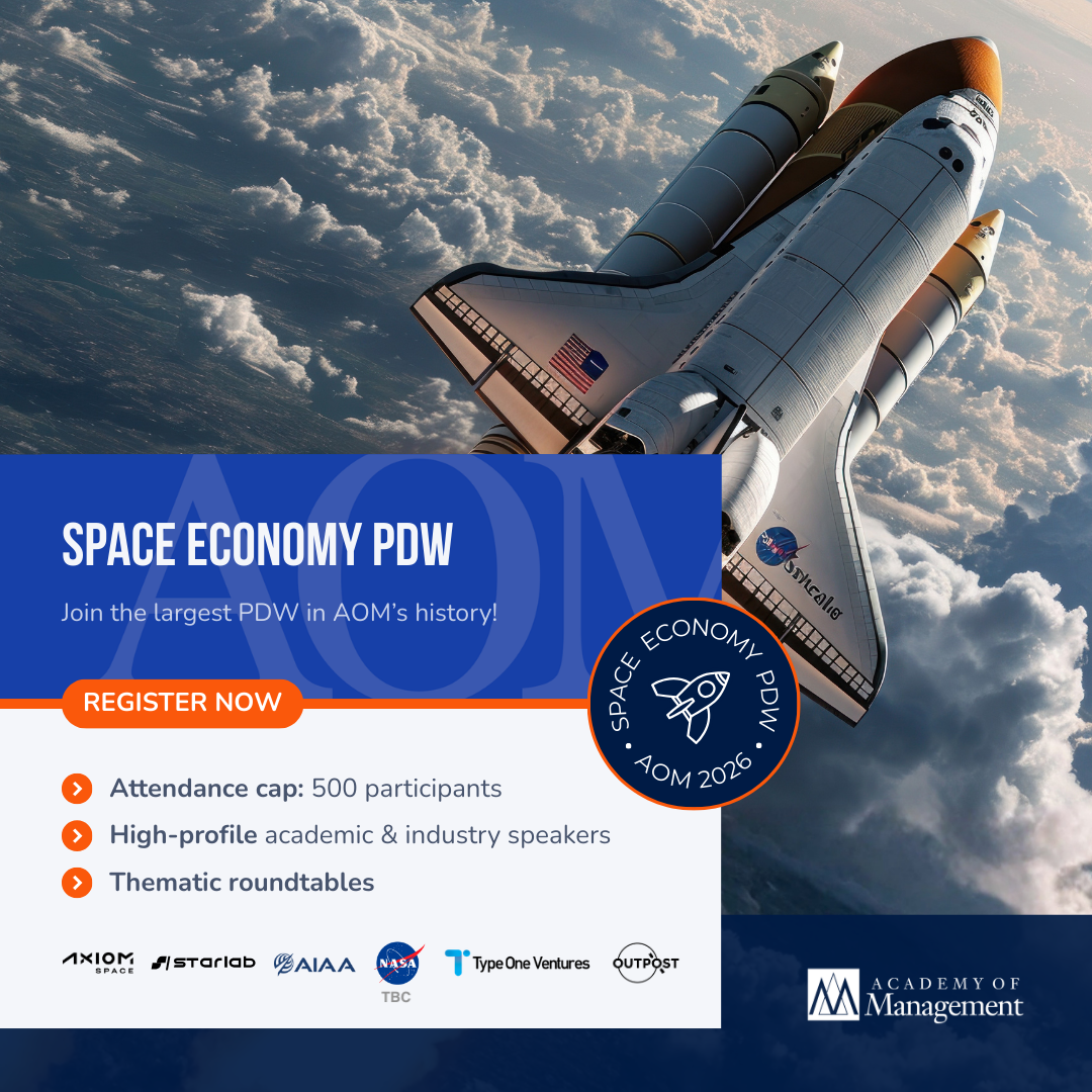 The Space Economy PDW brings together leading scholars and space industry pioneers to shape the future of management research. A 75-member organizing team and co-sponsorship from 22 divisions. You can find the list of speakers, panelists, and facilitators here.